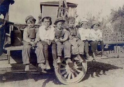 Eli Barnett's Grandchildren L-R: Louie Roripaugh, Harold Clogston, Leo Roripaugh, RIchard Barnett, Dorothy Colgston Nielsen, Helen Clogston
