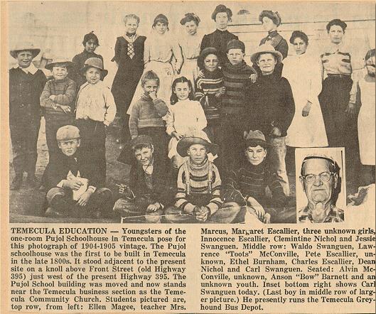 The Temecula Union School was used for classes until June of 1968. This school burned down in 1971.